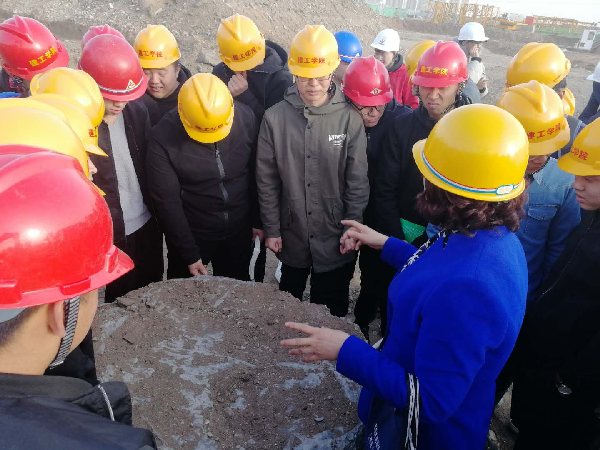 在参观结束后,集团三期项目总工程师雷铁红为参观的老师和员工们详细讲解了桩基础的施工工艺以及桩基静载试验的过程和要点。