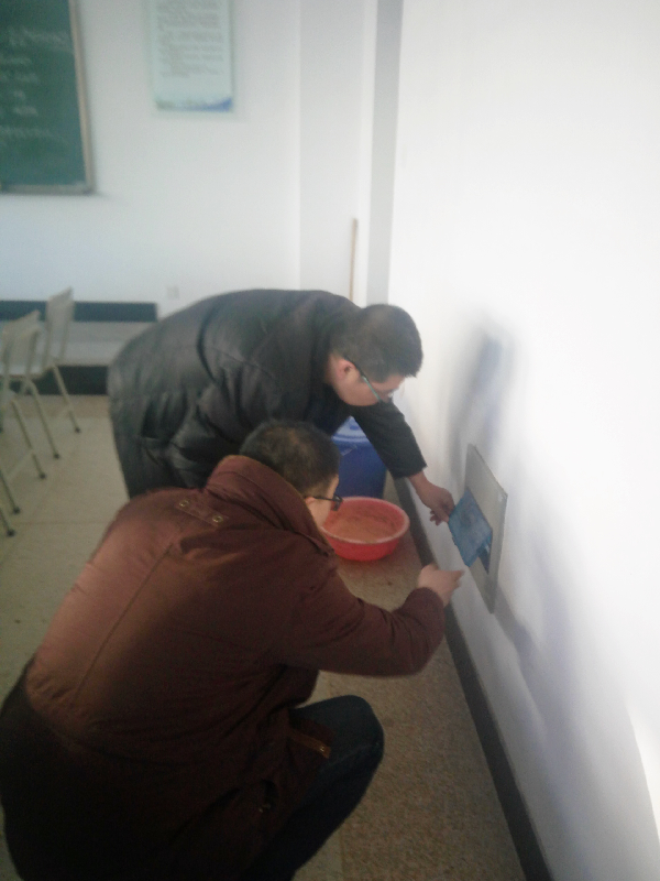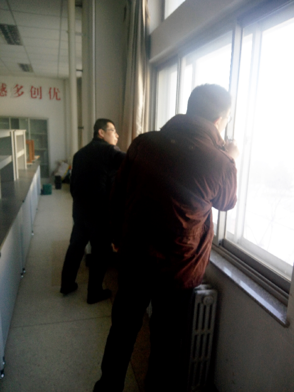 2017年1月7日,星期六,本着“安全第一,预防为主”、“关爱生命,关注安全”的目标,建筑工程公司副经理孙武斌,办公室主任张文杰带领工作人员认真落实排查了实训楼102、103、104、107、108、109以及205、206、207实训教室,着实解决了水、电、暖气等安全隐患问题,保证了所属实训教室设备的安全。