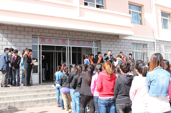 全体女同学参观一号男生宿舍并打分