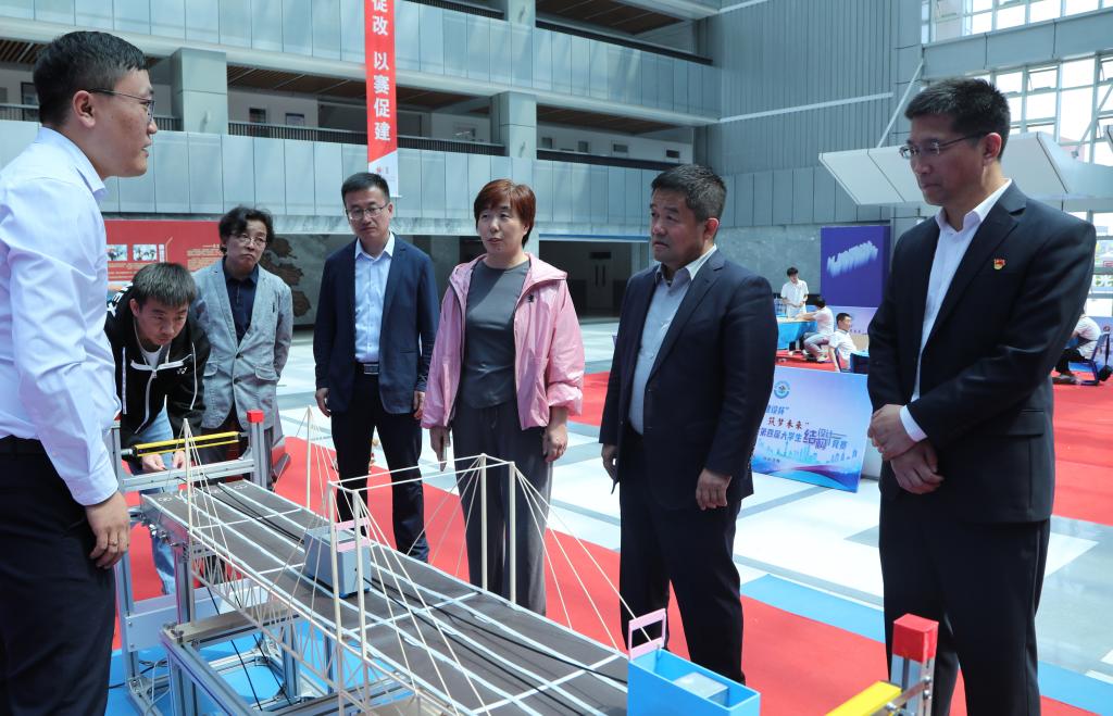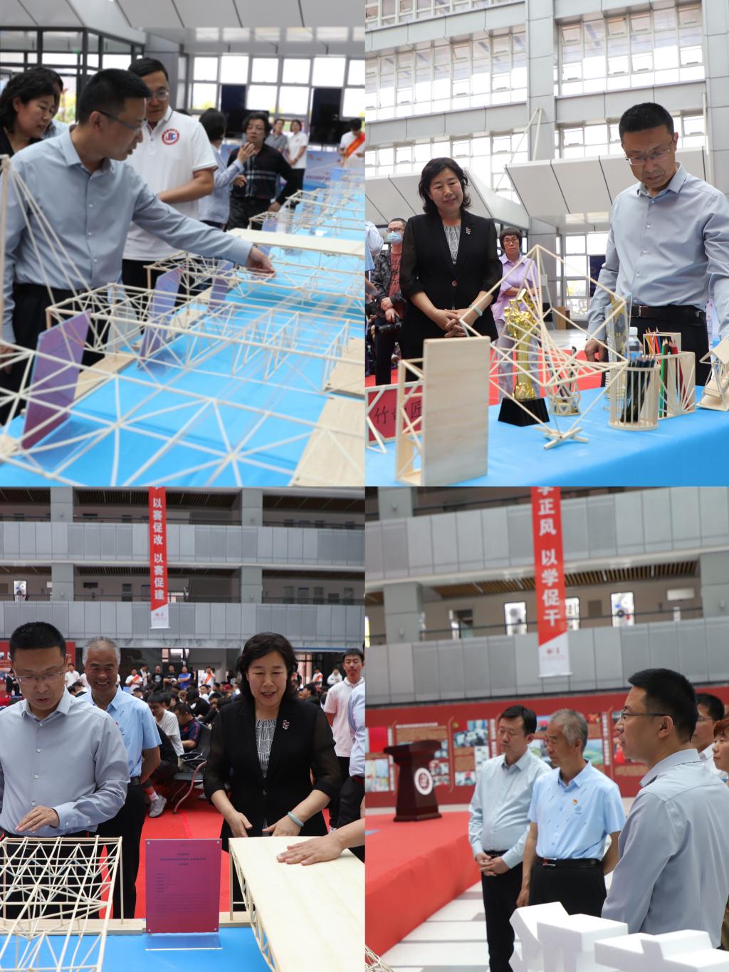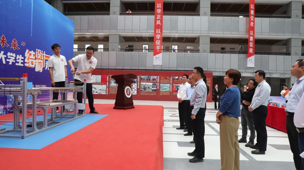 在模型加载环节,各参赛队进行了模型陈述及加载试验,专家评委们对参赛选手的作品结构及制作工艺等进行了分析点评,并指出了模型结构中存在的不足,参赛选手们受益匪浅。
