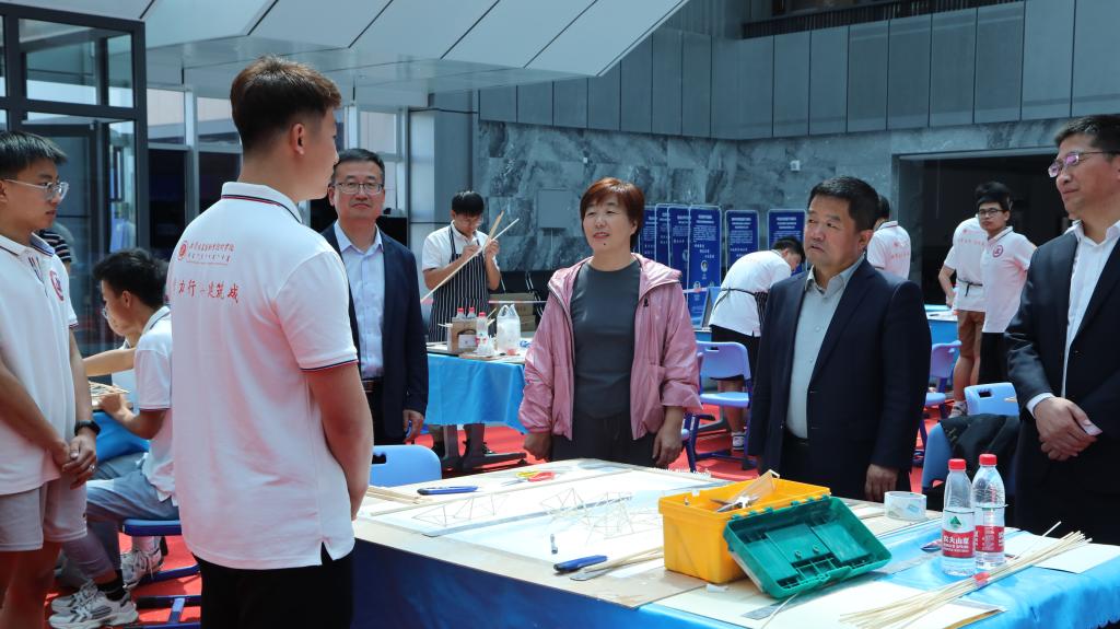 竞赛期间,内蒙古建筑职业技术公司党委书记范志忠亲临比赛现场参观指导,并与参赛队员亲切交谈,了解各参赛队的模型结构设计理念及进展情况。范志忠勉励各参赛队员作为新时代青年要学会表达、善于思考、扛起责任,立志做有理想、敢担当、能吃苦、肯奋斗的新时代好青年。言语谆谆,承载着最深的期许。