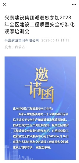 2023年6月20日上午8:30分,施工教研室全体老师在兴泰建设集团有限公司导师的邀请下,依托施工虚拟教研室平台,共同线上参加全区建设工程质量安全标准化培训会。