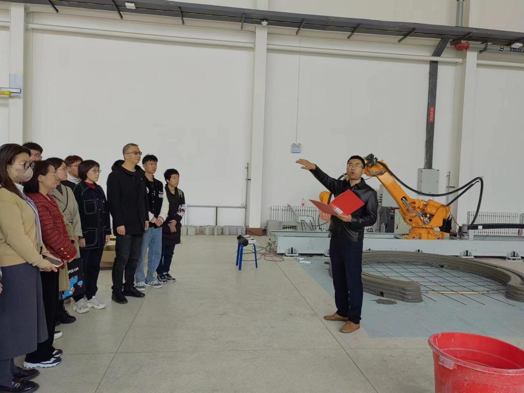 讲座后安排师生参观了土木建筑3D打印实验室,对混凝土3D打印机的工作原理与实操方法进行了深入了解。