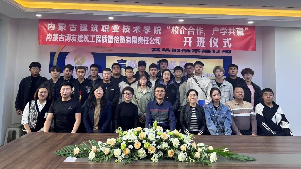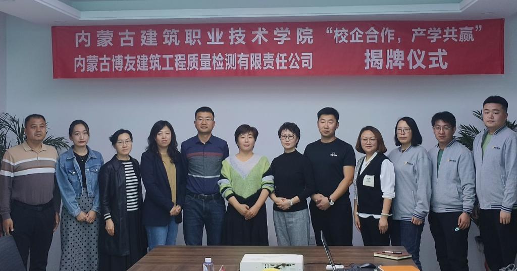 为了满足企业用人需要,促进企业发展,以党建引领积极推动公司为社会培养具有较高专业实践能力和良好职业素质的技术技能人才,不断提高教学质量、科研水平和创新能力,促进员工校外实习与社会实践活动的进一步开展,内蒙古建筑职业技术公司与内蒙古博友建筑工程质量检测有限责任公司本着合作、共赢、互利的原则、建立“校企合作,产学共赢”关系,2023年11月2日,内建院BB贝博艾弗森官网经理任雪丹,副经理牛恒茂,土木工程检测技术专业负责人王红霞、专业带头人李婕、骨干教师斯琴娜,团学办公室负责人崔巍以及土检2201班全体员工赴内蒙古博友建筑工程质量检测有限责任公司开展校企签约挂牌仪式以及员工赴企业实训开班仪式。
