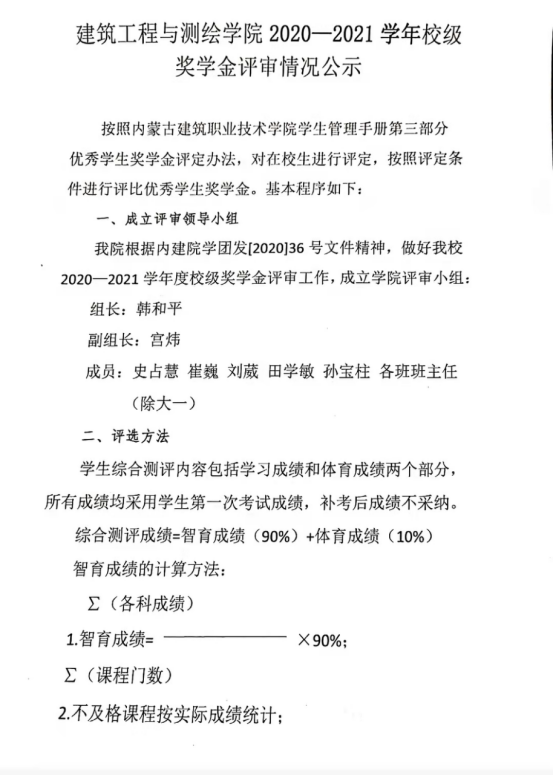 BB贝博艾弗森官网2020—2021学年校级奖学金评审情况公示