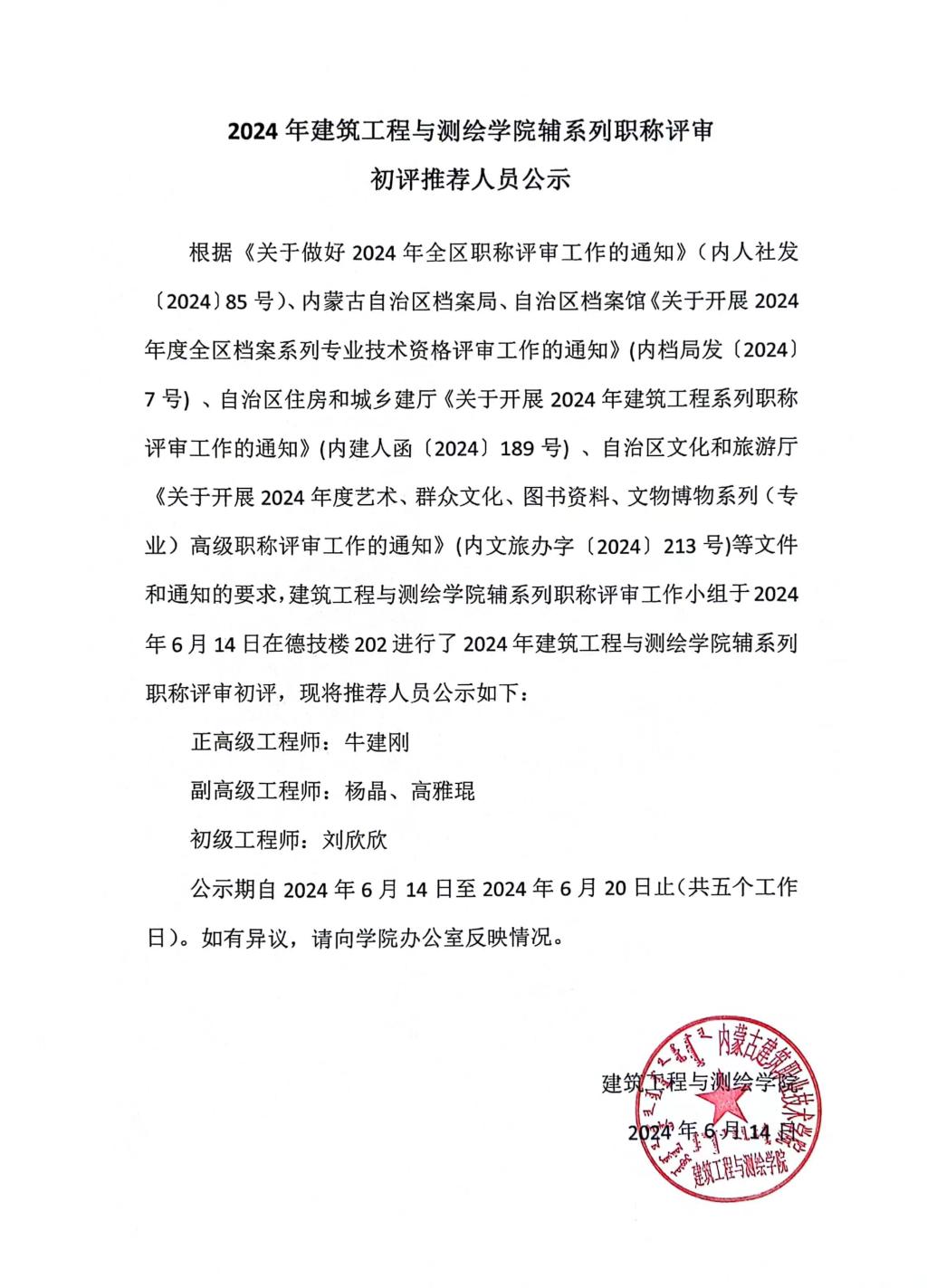 2024 年BB贝博艾弗森官网辅系列职称评审初评推荐人员公示