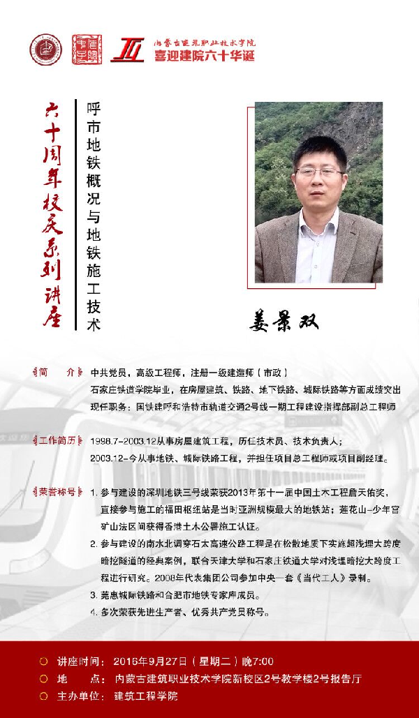建筑工程公司拟举办六十周年校庆系列讲座:呼市地铁概况与地铁施工技术