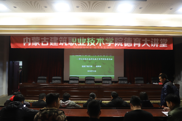 2018年12月20日晚,由公司党委宣传部、校团委、员工工作处、马克思主义教学与研究部、各二级公司联合举办的2018“德育大讲堂”举行,建筑工程公司党总支副书记杨军涛老师为员工作题为"牢记使命担当,放飞青春梦想——学习习近平总书记关于青年的重要论述"主题宣讲。建筑工程公司新一届员工会干部、员工党员、入党重点培养对象和积极分子、员工代表参加了讲座