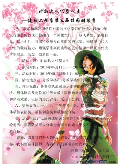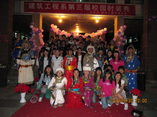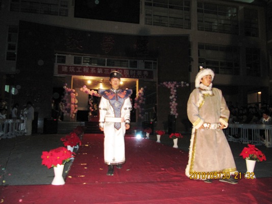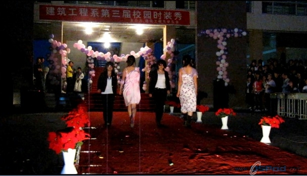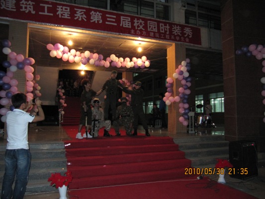 20105307301000,建筑工程系员工会女工部在公司1号教学楼和2号教学楼之间的走廊中间,举办了“时尚达人· T型人生”校园时装秀活动。