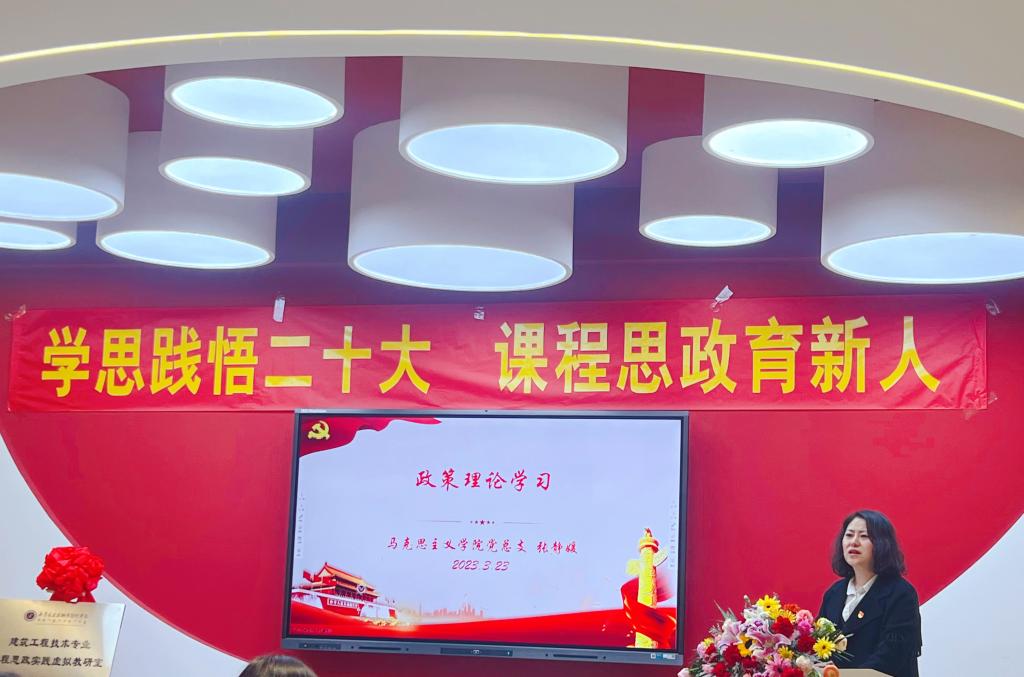 为深入学习宣传贯彻党的二十大精神,推进建筑工程技术专业课程思政实践虚拟教研室建设,将二十大精神有机融入日常教学中,落实立德树人根本任务,2023年3月23日下午,马克思主义理论研究党支部、思想政治教育研究党支部、智能建造与检测党支部在马克思主义公司党建思政融创基地联合开展了“学思践悟二十大,课程思政育新人”主题党日。