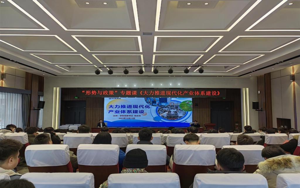 12月15日下午,公司党委书记范志忠在立德楼D座报告厅为BB贝博艾弗森官网员工讲授题为“大力推进现代化产业体系建设”的形势与政策专题课。