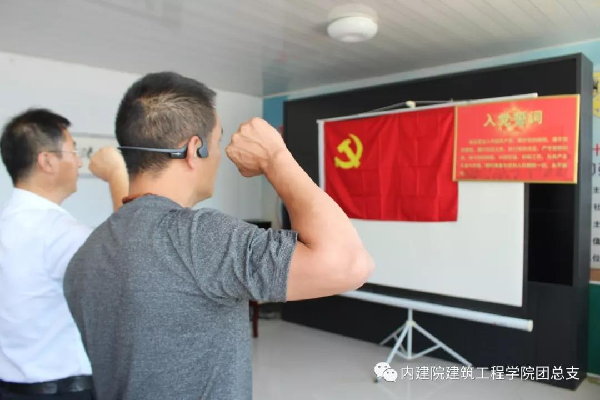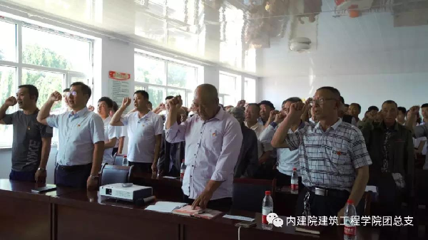 课堂上,建筑工程公司党支部与红富村党支部党员共同重温了入党誓词,党员们个个神情严肃庄重。