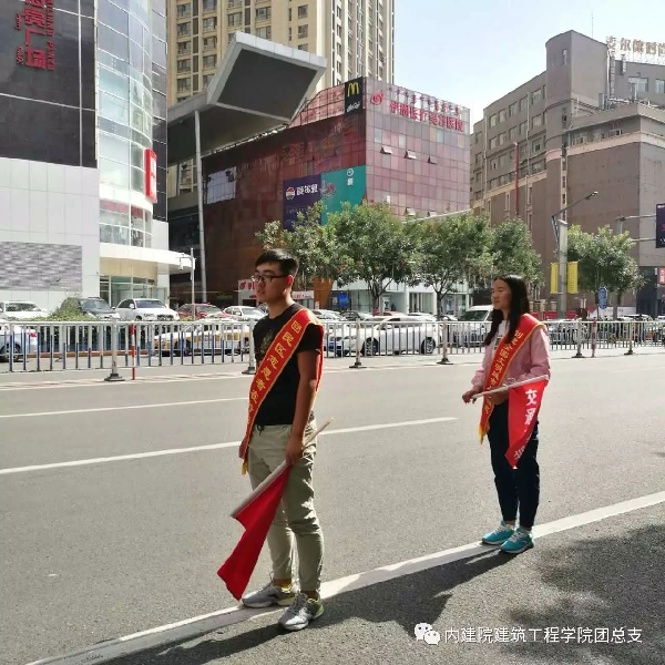 建筑工程公司1607班的同学也不例外。于9月18日(星期一)下午坐车去了回民区中山路附近。参与起了协助交警的任务!