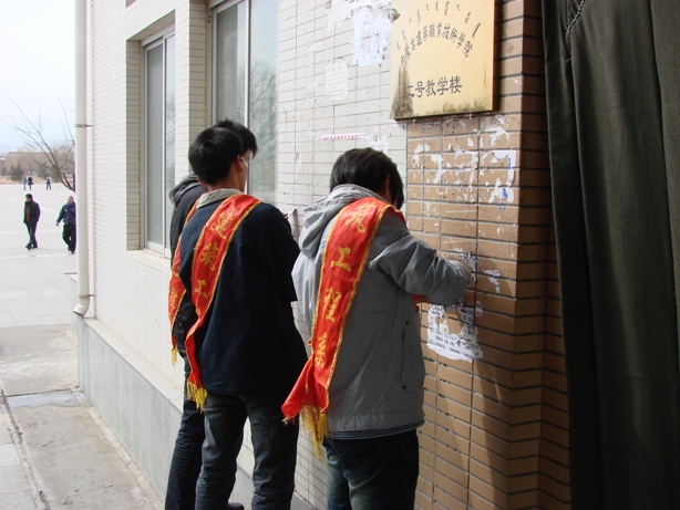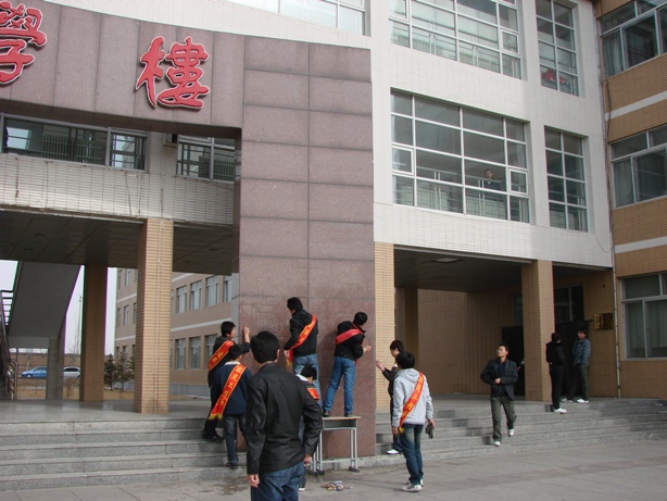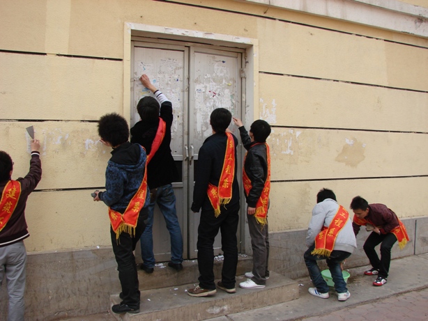 2010年3月18日下午,伴随着春风,建筑工程系员工会干部对校园内建筑物的表面进行了清理。把张贴在公司墙壁、栏杆和柱子上的广告予以铲除。