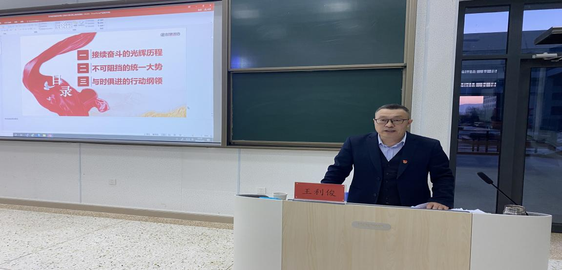 2023年3月27日晚上19:00,内建公司党委委员、宣传部部长王利俊在立德楼D座报告厅为BB贝博艾弗森官网员工讲授《形势与政策》课程。王部长以《在新时代新征程上推进祖国统一》为主题,围绕“持续奋斗的光辉历程、不可阻挡的统一大势、与时俱进的行动纲领”三个方面,进行了生动、全面的讲解。